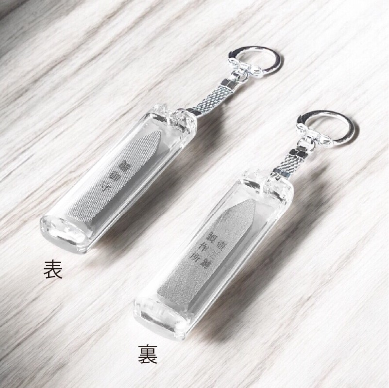 このキーホルダーには、お守り同様ヤスリ本体が内包されています。