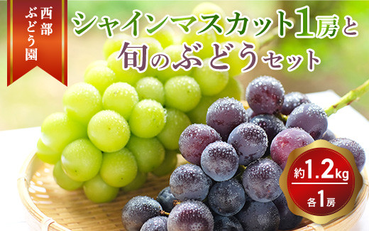 西部ぶどう園 シャインマスカット1房と旬のブドウ1房 計約1.2kg 葡萄 フルーツ 果物 2026年9月上旬頃より順次発送 ※沖縄・離島への配送不可