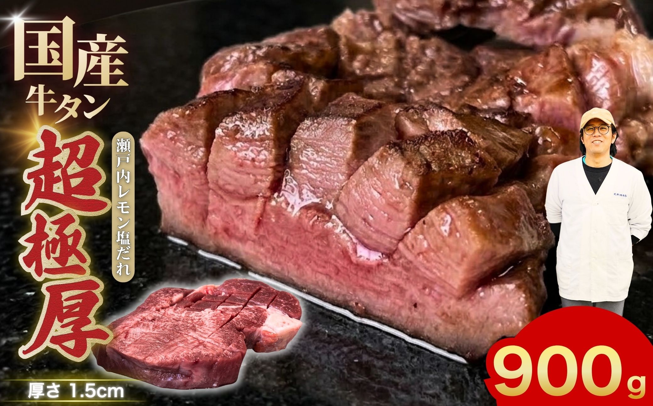 瀬戸内レモン香る特製塩だれで味わう、肉の匠が厳選した希少な国産牛たんの贅沢な旨み 【選べる配送回数 極厚国産牛タン定期便】国産牛タン 900g 超極厚カット1.5cm 瀬戸内レモン塩だれ 尾野精肉店の牛タン【国産牛 牛肉 牛たん 厚切り 味付け 味付き 焼肉 BBQ 数量限定 真空パック 小分け 冷凍 広島県 竹原市】