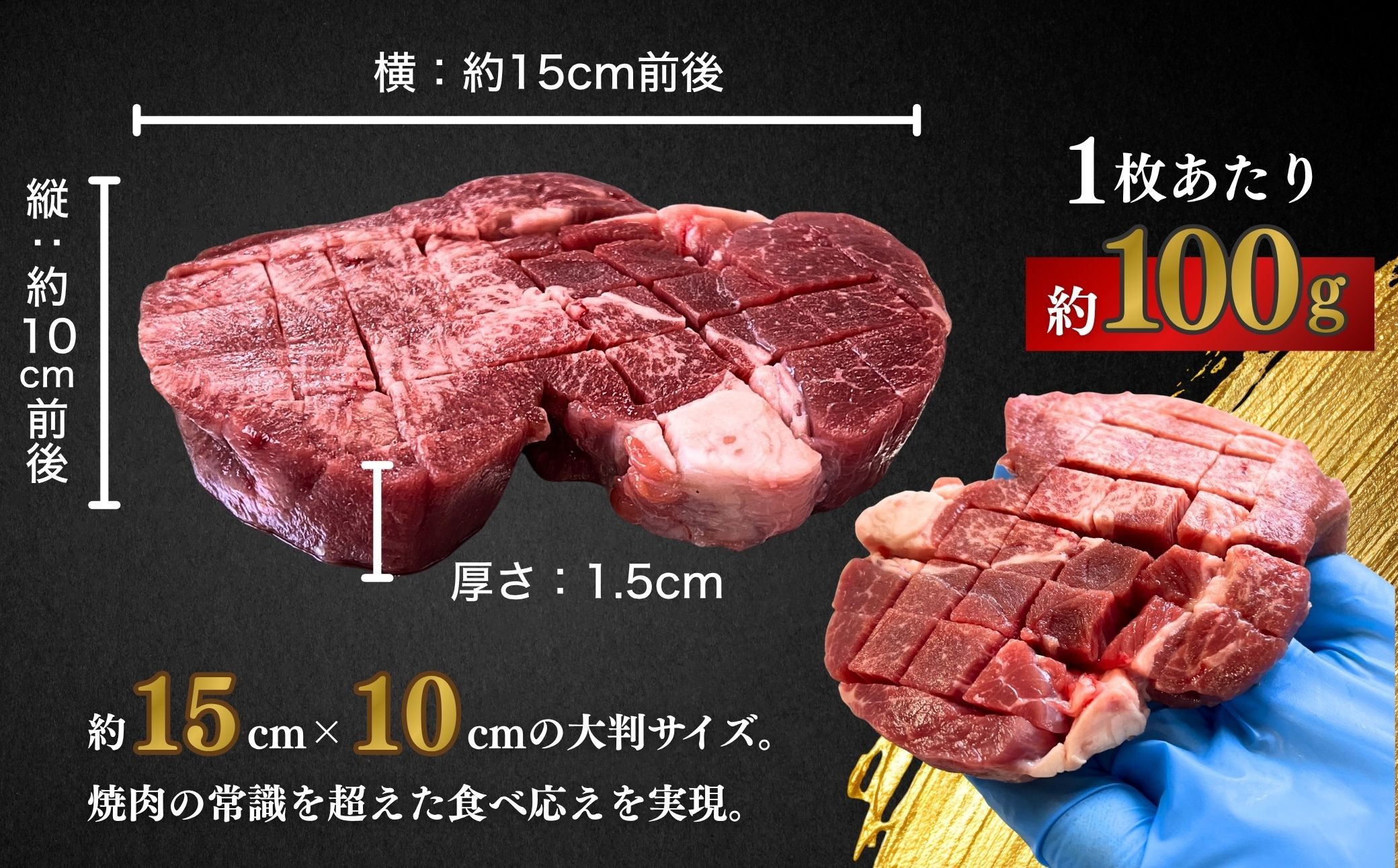 一枚あたり約100g、約15cm×10cmの大判サイズで、焼肉の常識を超えた食べ応え。