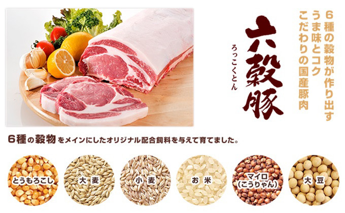 瀬戸内六穀豚(せとうちろっこくとん)は6種類の穀物が作り出すうま味とコクのこだわりの国産豚です。おいしさの理由は6種類の穀物【とうもろこし・大麦・小麦・お米・マイロ(こうりゃん)・大豆】をメインにしたオリジナル配合肥料にあります。肉のうま味、まろやかなコクを作り出すとともに、しまりのある肉質、淡い肉色、きれいな白上がりの脂肪色にもこだわりました。安心安全のこだわりとして畜産物安全安心生産農場の認定を受け、豚の安全性・健康に配慮し、衛生管理を徹底した農場で生産を行なっております。生産方法や商品性が認められ、“こだわりの広島の幸”として「広島県産応援登録制度」に登録されました。