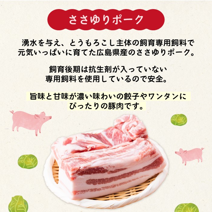 広島県産のささゆりポークと国産野菜、広島県東広島産のしそをたっぷりつつんだ「しそぎょうざ」。