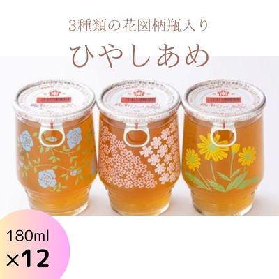 チョイスPayポイントと交換できる品 ひやしあめ 3種の花図柄瓶入り180ml×12本 生姜 飲料 麦芽飴 ショウガ ジュース ドリンク 清涼飲料水 あめゆ 023010