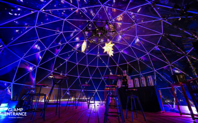 中国地方初の飲み放題スケルトンドームバーや、バレルサウナ、ドッグランつきコクーン・ドームテント、屋内キャンプファイヤー設備など魅力いっぱいの施設となっています。