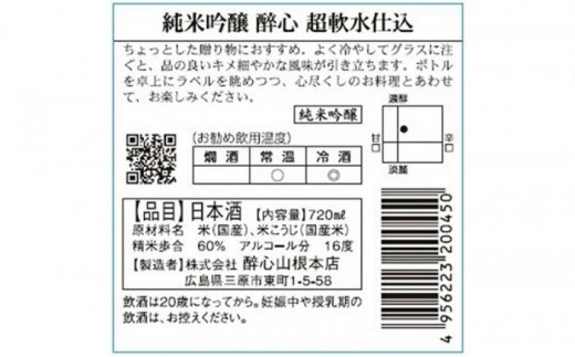 | 容量 | 純米吟醸 「醉心 超軟水仕込」 720ml ×1本 カートン入り |