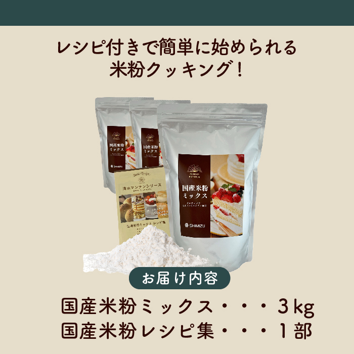 チョイスPayポイントと交換できる品 国産米粉ミックス 3kg(1kg×3袋) レシピ付きで簡単に始められる米粉クッキング! 米粉 国産 グルテンフリー こんにゃくマンナン 清水化学 三原 パン お菓子作り ミックス粉 マンナン粉 048011