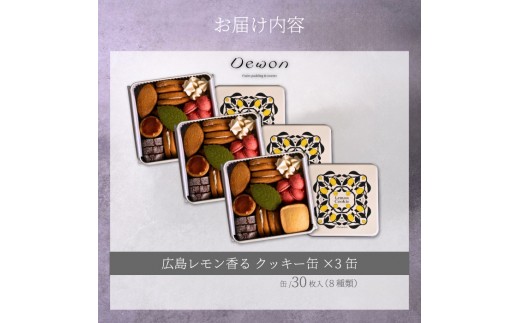 チョイスPayポイントと交換できる品 【日本一の出荷量を誇る広島レモン使用】Dewonスイーツ 広島レモンクッキー缶(8種30枚) 3缶 クッキー缶 ギフト フランス菓子 スイーツ デザート 洋菓子 菓子 こぐまや洋菓子店 045006