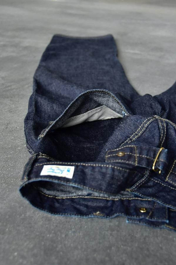 ・通常のデニムは3/1の綾に対してこちらの生地は2/1綾で織られています。軽く柔らかい生地ながら耐久性があり、ワークウエアとしても最適な穿きやすさです。