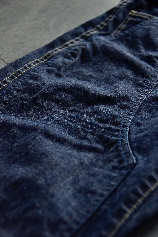・通常のデニムは3/1の綾に対してこちらの生地は2/1綾で織られています。軽く柔らかい生地ながら耐久性があり、ワークウエアとしても最適な穿きやすさです。