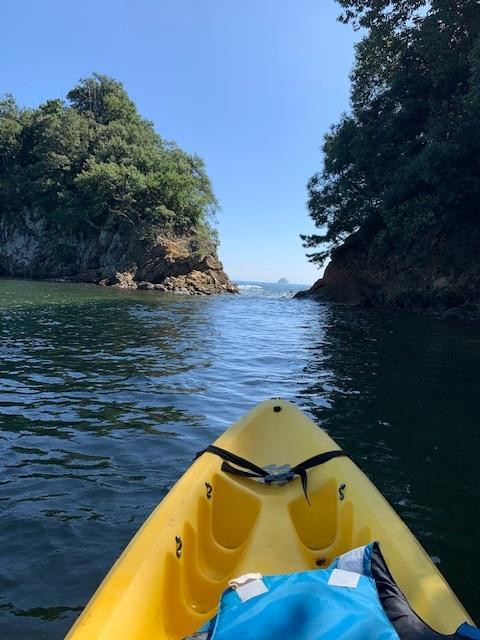 レクチャーを受け、折古ノ浜湾内でカヌーの体験をしていただいてから目的地へ向かいます。最後にカヌーの片付けをして終了です。