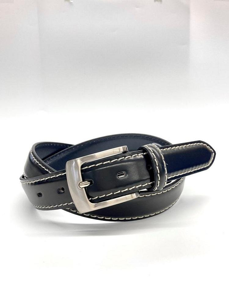 ベルト幅は30mm、ウエストサイズはM寸97cmに対応していますが、フリー金具を外してお好きなサイズにカットしてご使用ください。ベルト部分の表材には姫路産の牛革を使用し、ステッチは太番手を施しおしゃれに仕上げました。裏材には床革にPU加工(紺色)を施し、本革よりも色落ちしにくい素材を使用しています。