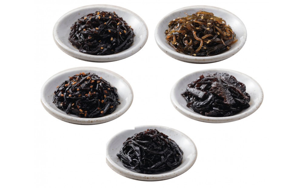 尾道で創業約80年、守り続ける製法と秘伝のたれ。北海道釧路産厚葉昆布をじっくり炊きこみ”もっちりやわらかく”仕上げ、さわやかで濃厚なしその香を加えた当店人気No1の「特上しそ昆布」や、金ごまが香ばしい「特上金ごま昆布」、国産のしいたけの旨味たっぷり「特上しいたけ昆布」、唐辛子のピリッと辛口「からし昆布」、糸こんにゃくと昆布を合わせたオリジナル佃煮「こんにゃく昆布」の昆布佃煮5品の詰め合わせです。