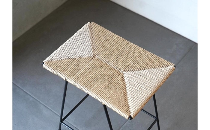 シンプルで無駄のないデザイン、アイアンと座面のペーパーコードが素材そのものの存在感を放ち、見た目にもおしゃれなスツールです。