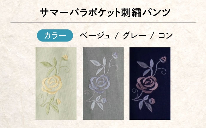 福山ブランド認定品! パンツ レディース メンズ ファッション ウエスト ゴム 【選べるカラーとサイズ】サマーバラポケット刺繡パンツ 股下55cm 広島県福山市/株式会社ナツメダ ズボン ウエスト ゴム ベージュ グレー 紺 ネイビー [BACU031]