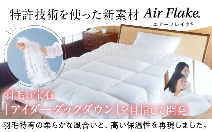 日本の気候に適した保温性と蒸れにくさを兼ね備えた人工羽毛エアーフレイク(R)寝具が、睡眠の質向上をサポートします。