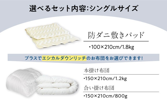 世界初特許取得! 洗える 羽毛布団 日本製 シングル 掛け布団 清潔 【選べる種類】洗える 人工羽毛布団 エシカルダウンリッチ 本掛け布団 合い掛け布団&防ダニ敷きパッドセット シングル 広島県福山市/イシケン株式会社 羽毛 布団 ふとん 本掛け 合掛け 掛け布団 掛布団 軽い 日本製 秋 冬 寝具 アレルギー対策 サステナブル [BAAK159]