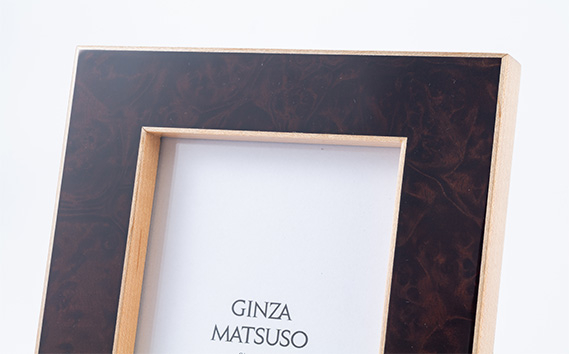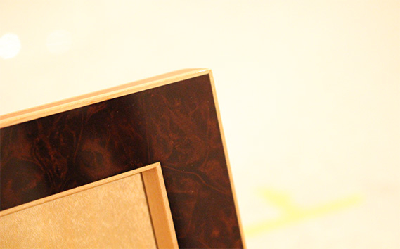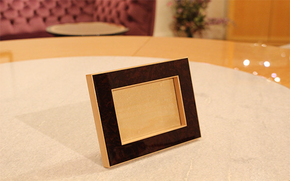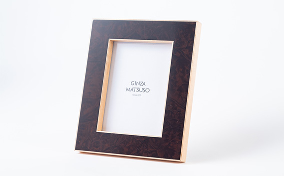 希少なマーブルウッドの杢目が上品な印象のフォトフレーム。