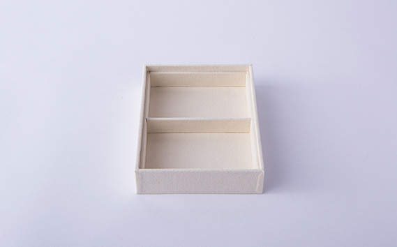 指輪収納と、様々なアクセサリーを収納できるシートの組み合わせです。2段重ねでも、1段ずつでもお使いいただけます。黒檀の蓋付です。