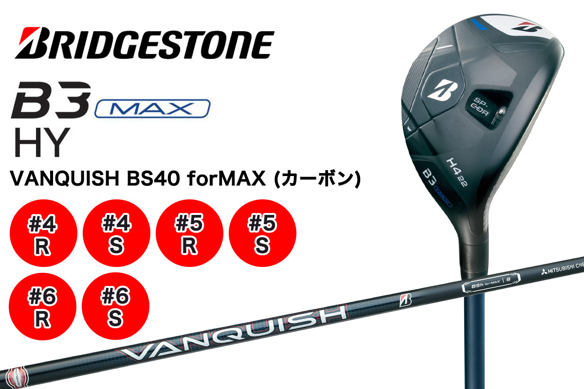 ゴルフクラブ ブリヂストンゴルフ B3 MAX HY|Bシリーズ カーボ…110,000 円 ☆大きく飛ばす「MAXやさしい」高機能HY! ■高機能ウェイトでブレない寛容性を追求したB3MAX HY ■安心感のある幅広シャロ―形状でやさしく飛ばす。 ■スリップレスバイトミーリング搭載でスピン量も最適化。 ■Bシリーズ最軽量シャフト ■MAX優しいヘッドに合わせた安定したスイングに導くシャフト。 ※製品の付加価値に必要不可欠な化学繊維を市内事業所で生産しています。 【注意事項】 ※返礼品のため、特注品は受けかねます。 ※不良品以外の返品はお受けできませんのでご了承ください。 ※商品欠品時には次の入荷までお待ちいただく場合があります。 ※お申し込み後の寄付者様都合でのキャンセルはできかねますので、番手・硬さを十分にご確認の上お申し込みください。 ※保証書はお申込みより2年間有効となります。保証書を紛失されますとクラブ修理はいかなる場合でも有償扱いとなります。 また、保証書がある場合でも有償になる場合があります事をご了承ください。 【ブリヂストンスポーツセールスジャパン株式会社】 - 常温便