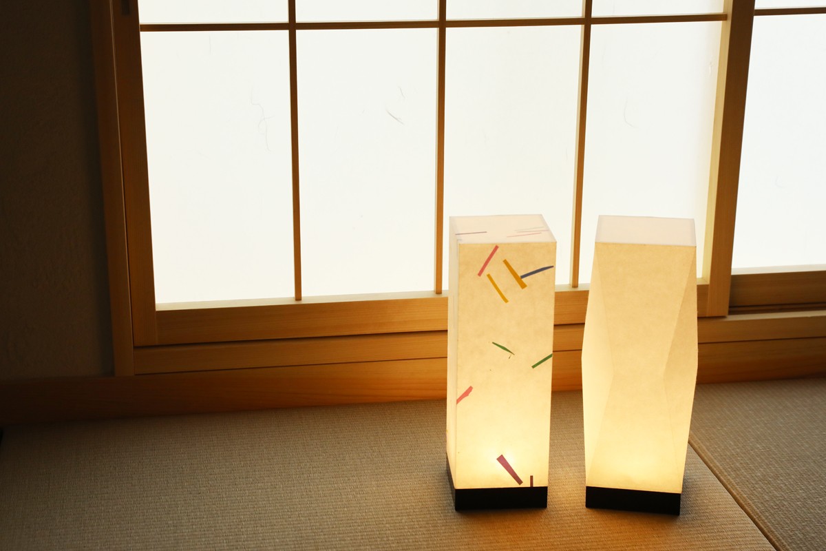 配線不要で便利なコードレスタイプで、スタイルを問わずにリビングの壁際や寝室のベッドサイドなどへ置くだけで和紙を通したあかりが広がり、空間の印象を和らげます。