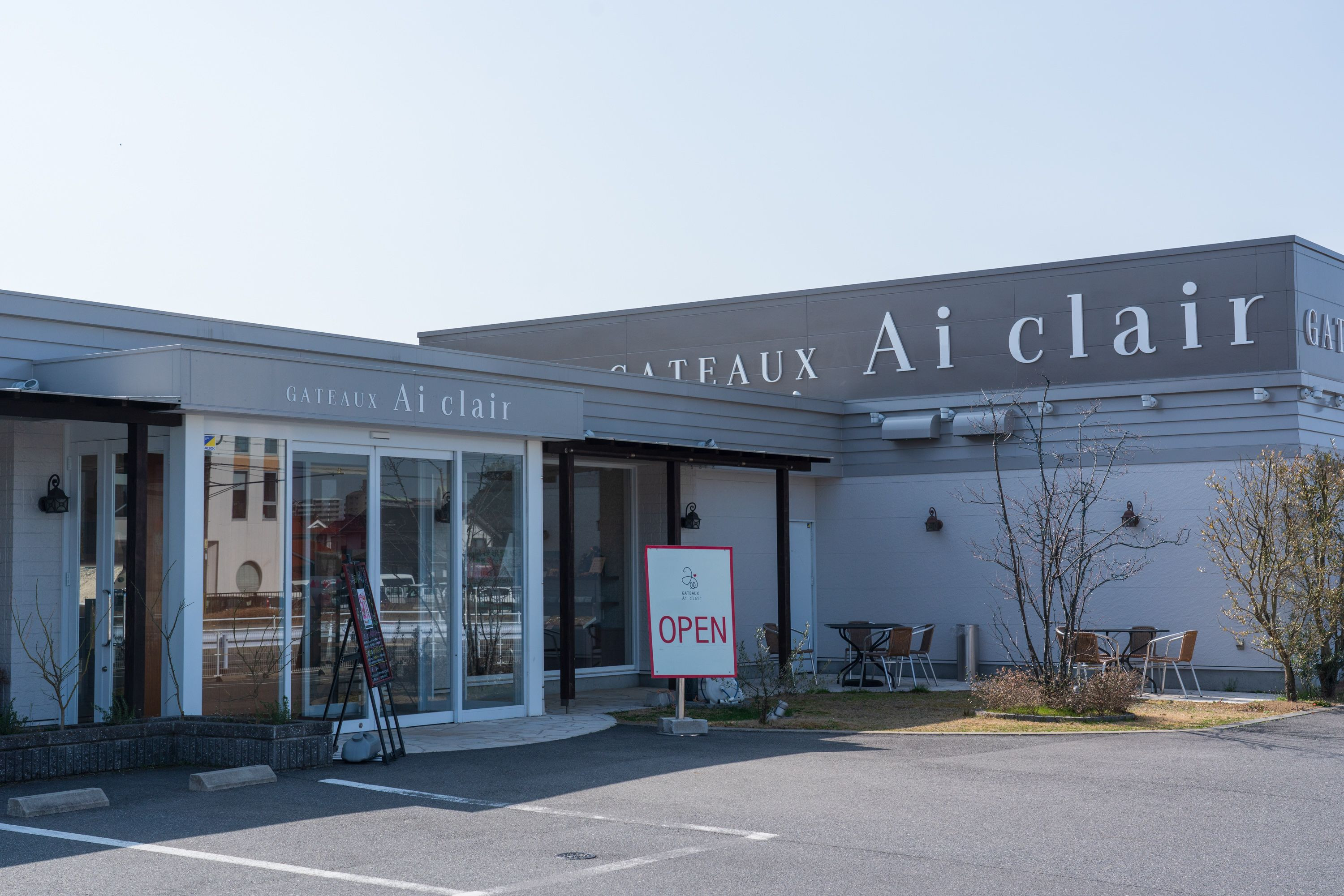 白を基調とした、おしゃれなケーキ店「ガトーアイクレール」。ショートケーキやロールケーキ、プリン、焼き菓子と、さまざまなスイーツが並びます。