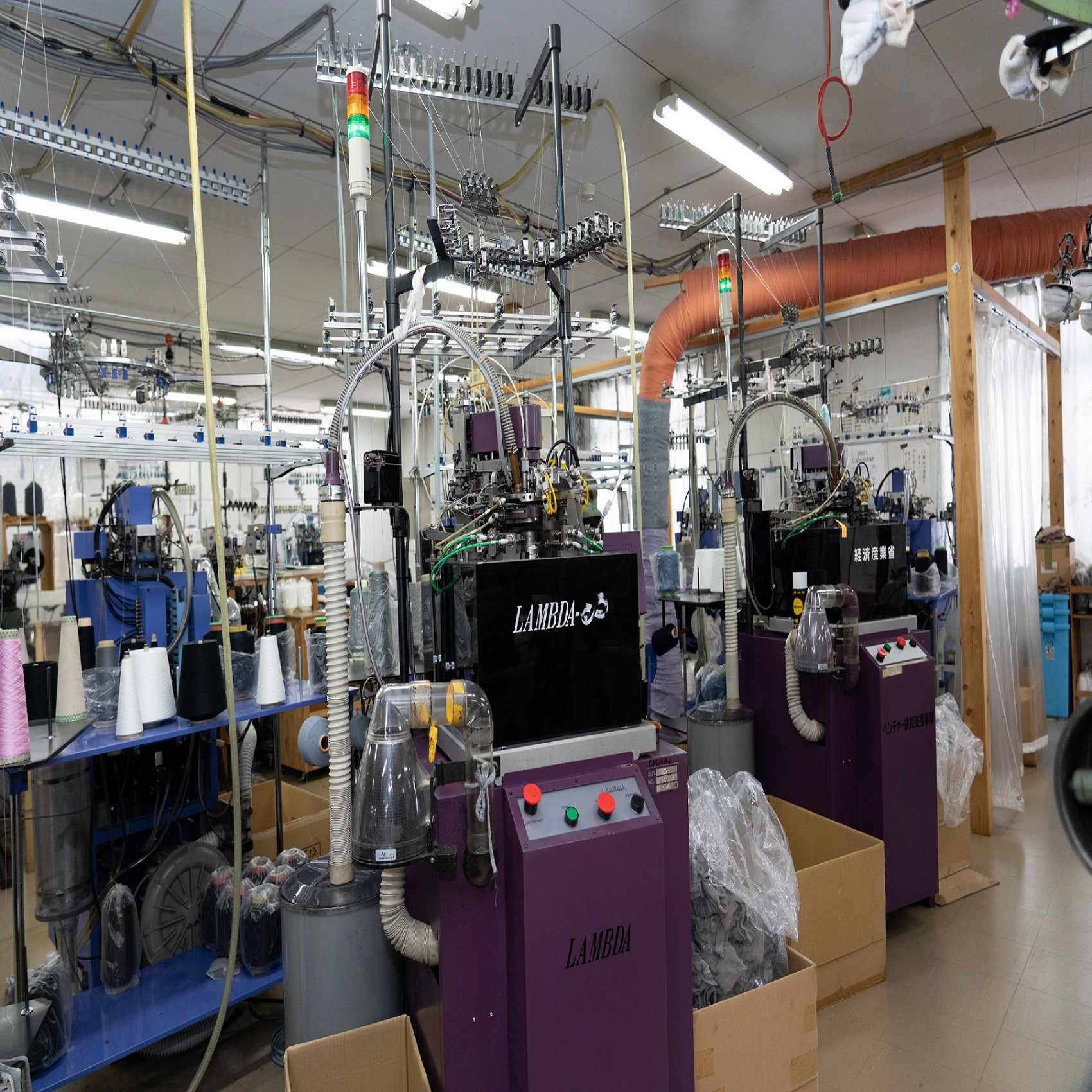 「むくみ対策くつ下」は、伸縮率の違う編み方を組み合わせることで、つま先を甲の方へ引っ張る力が加わるように作られています。複雑な編み方が可能なのは、高いコンピューター技術と経験を持つ同社だからこそ。