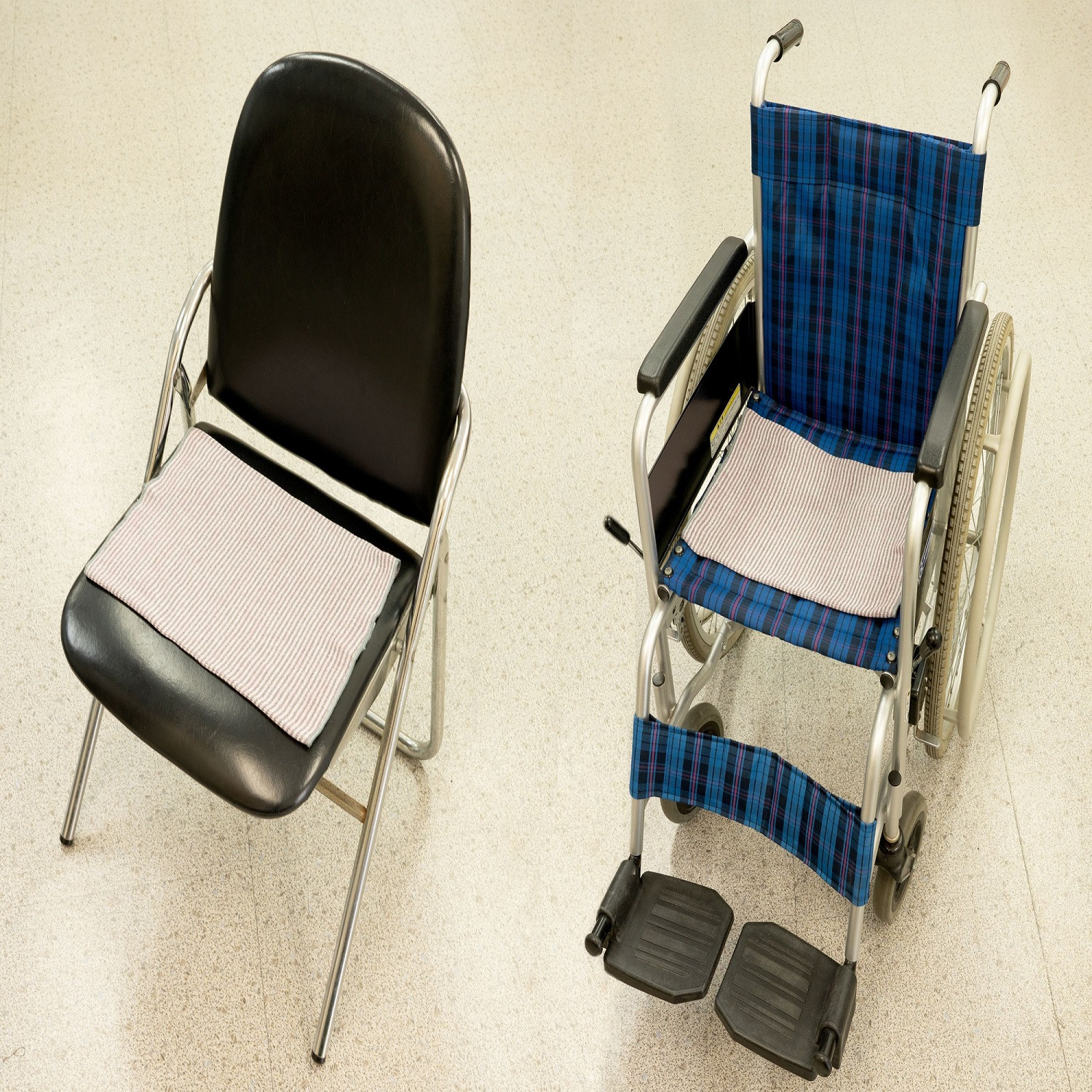 例えば車いす移動時、食事中のいすの上に敷くことで、姿勢が安定します。足元に敷いて立ち上がりの補助に使用したりもできます。長時間の座り仕事等にも、姿勢を安定させる効果があります。