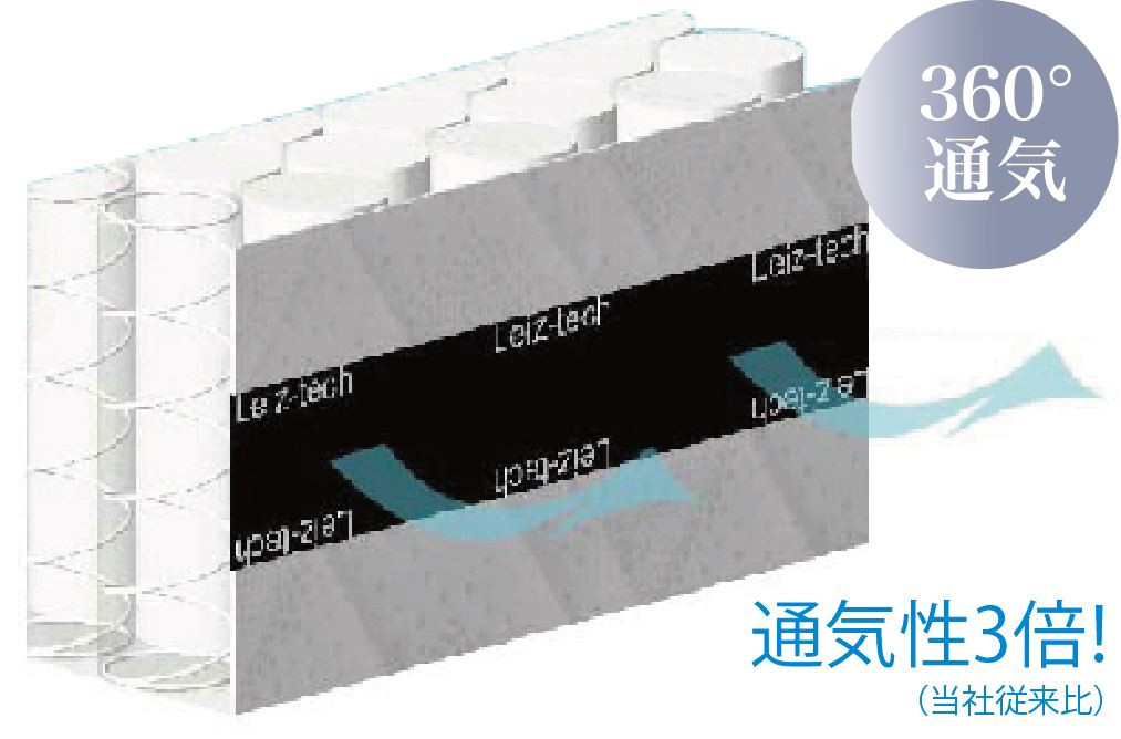 マットレス側面に高い通気性のあるラッセ(メッシュ)生地を採用。