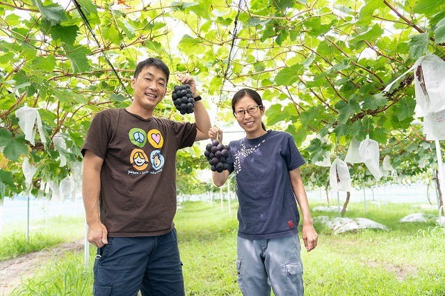 「たかやのぶどう」は2013年、25アール11品種のぶどう栽培を夫婦でスタートしました。現在は、50アールの畑で収穫時期が少しずつ違う16品種のブドウを栽培しています。