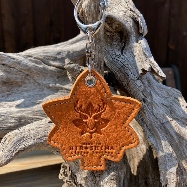 広島県の美しい自然の象徴「もみじ」をモチーフにした、東広島産ジビエレザー鹿革製のキーホルダーです。