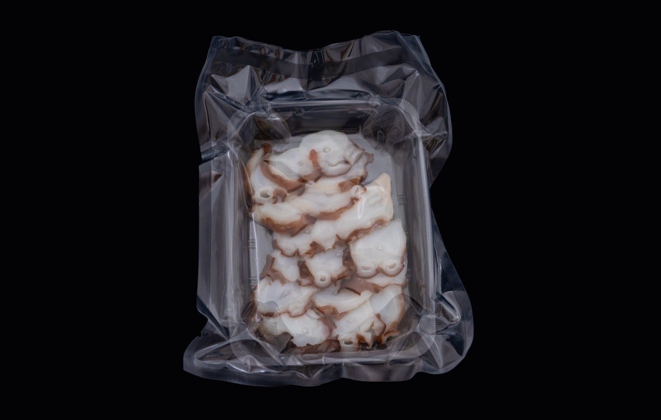 広島安芸津町で獲れた肉厚で弾力のあるたこの刺身です。とれたてのたこを塩揉みせずに滑りだけをとり、低温で火を入れ、吸盤はパリッと、皮は程よくもっちり、足は生ではなく透明感のある火入れでプリッとした食感に仕上げました。全て活きている間に調理し、急速冷凍しております。瀬戸内海で育まれた濃厚な旨味と甘味が広がる、贅沢な味わいをぜひご堪能ください。冷蔵庫で解凍し、お好みの醤油、ポン酢等で召し上がっていただくのが一般的ですが、40度ぐらいの温かいたこ刺身もおすすめしております。