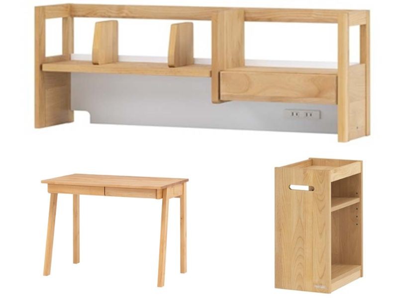 暮らしに寄り添う堀田木材所の家具 学習デスク3点セット(フィーロ 本体・上棚・ワゴン)