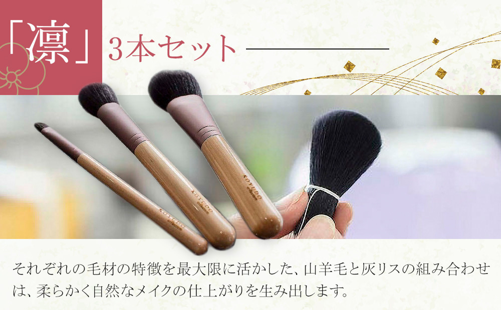 化粧筆 晃祐堂 「凛」3本セット59,000 円 大切な人や自分へのご褒美に。高級化粧筆で毎日のメイクを癒しのひとときへ。 - 常温便