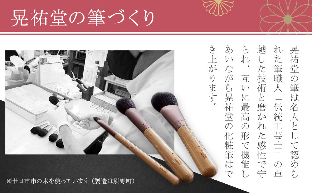 この自治体のポイントについてチョイス公式ポイント交換対象 大切な人や自分へのご褒美に。高級化粧筆で毎日のメイクを癒しのひとときへ。 化粧筆 晃祐堂 「凛」3本セット