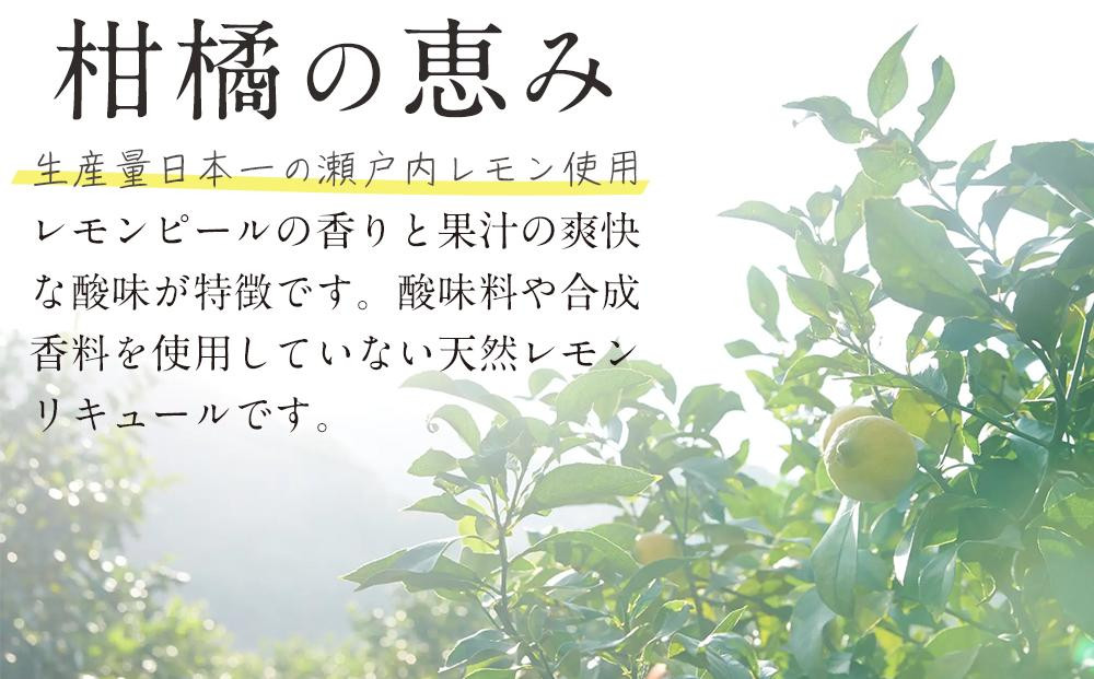 レモン生産量日本一を誇る「瀬戸内レモン」をまるごと使用しました。レモンピールの香りと果汁の爽快な酸味が特徴です。酸味料や合成香料を使用していない天然レモンリキュールです。