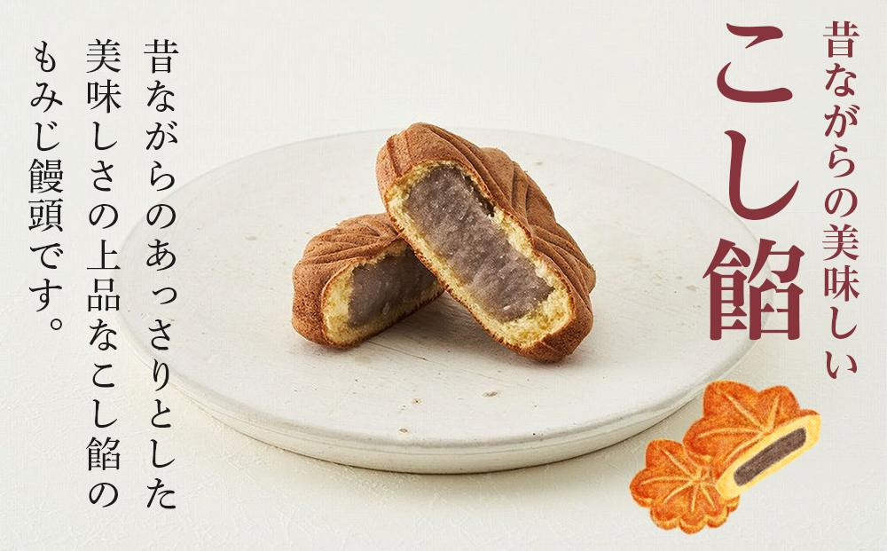 昔ながらのあっさりとした美味しさの上品なこし餡のもみじ饅頭です。