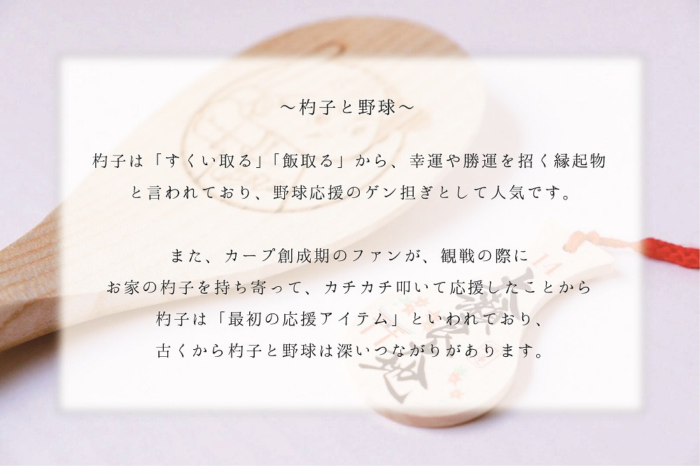 宮島が発祥の伝統工芸品「宮島杓子(みやじましゃくし)」がプロ野球の広島東洋カープとコラボレーションした、球団公認グッズです。