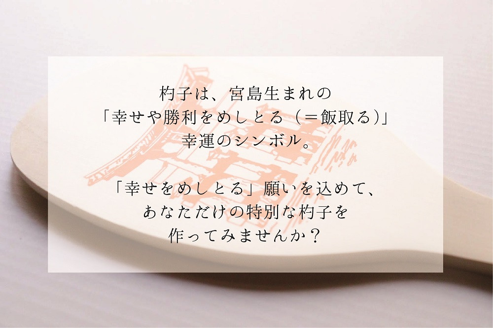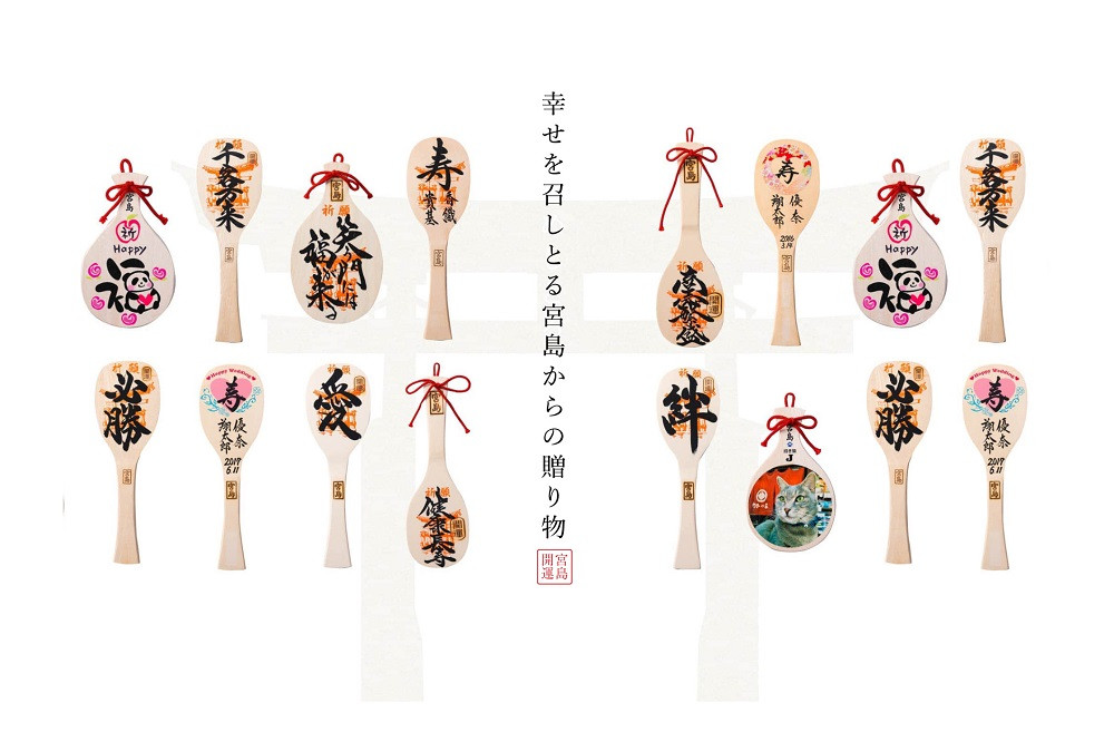 宮島が発祥の地である杓子(=しゃもじ)は、「幸せをめしとる」縁起物として