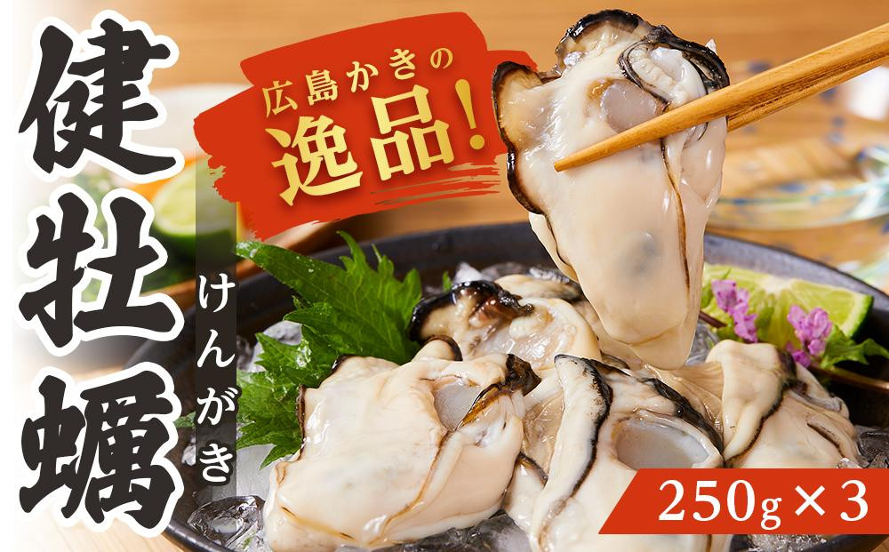 | 容量 | 【健牡蠣(けんがき)】 生牡蠣むき身 250g×3 ※使いやすいように250gずつの小分けにしております。 産地:広島廿日市市 製造・販売者:川崎水産株式会社 広島県廿日市市地御前5丁目3-17 |