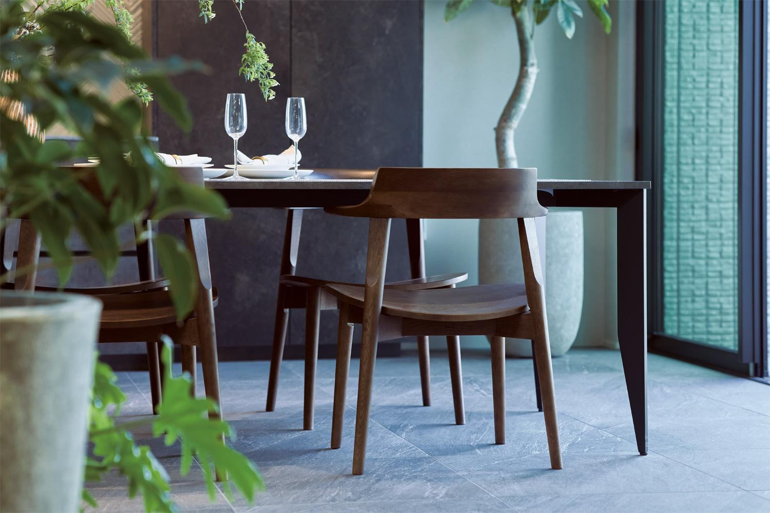 広島の象徴でもある厳島の大鳥居をイメージしたそのフォルムは、日本人に古くから馴染みのある形を再現しながらもモダンな印象を与えます。良質な無垢材をふんだんに使用し、デザイン性と坐り心地の良さを徹底的に追求した一脚は、浜本工芸らしい使い手を思った機能性と耐久性に加え、『見ていたい』『触れていたい』と感じてもらえるダイニングチェアに仕上がりました。