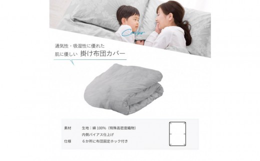 本製品は掛け布団カバーです。お手持ちの掛け布団に装着してお使いください。