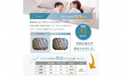 さらに、肌に優しい綿100%素材でありながらホコリが出にくく、花粉も手で払うだけで低減するため、小さなお子様や、ハウスダストに敏感な方にも安心してご使用いただけます。