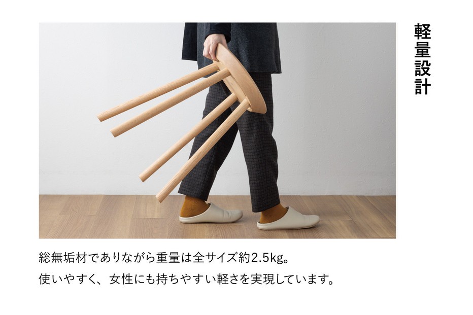 上質なオーク材を贅沢に使った、総無垢材のスツール。座面高44cmとダイニングテーブルにオススメの高さです。座面にはノンスリップ加工を施してあるので、お尻が滑りにくく、着座位置をしっかりとキープできます。お部屋に木の温もりをプラスしたいときにも活躍します。