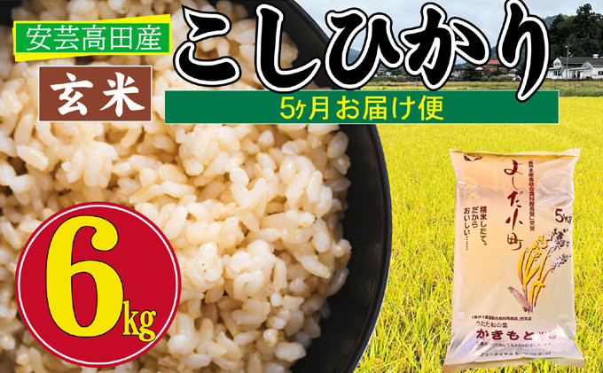 [№5895-0257]米 【5ヶ月お届け】令和5年産 安芸高田市産コシヒカリ『玄米』6kg