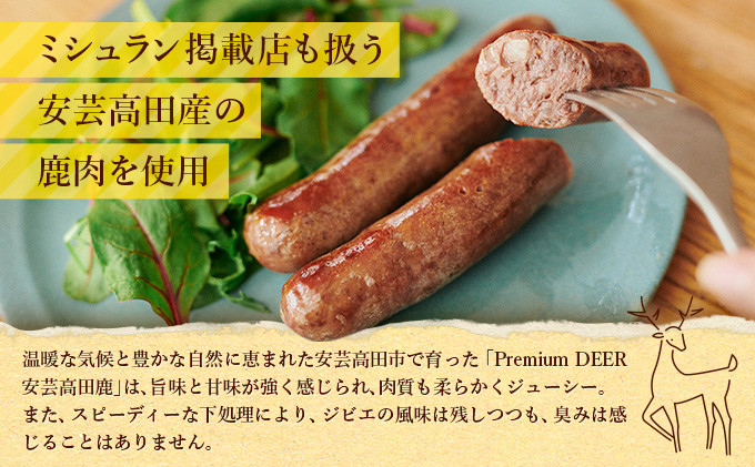 東京のミシュランガイド掲載店や人気レストランで扱われる鹿肉ブランド「Premium DEER 安芸高田鹿」がソーセージになって登場!保存料、添加物は一切使用せず、鹿肉本来の旨味と風味を生かしたこだわりの逸品です。この機会にぜひご賞味ください。