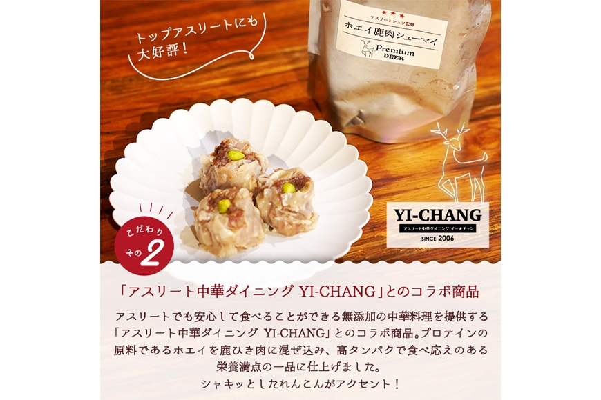 本商品は、アスリートでも安心して食べることができる無添加の中華料理を提供する「アスリート中華ダイニング YI-CHANG」と「Premium DEER安芸高田鹿」によるコラボレーション商品です。
