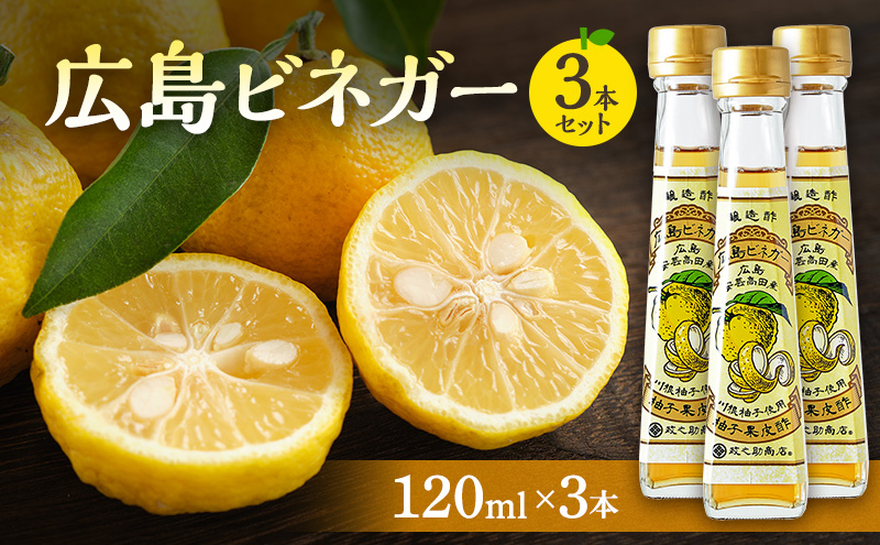 | 容量 | 広島ビネガー  120ml×3本 ■返礼品の地場産品基準■ 広島県安芸高田市産の川根柚子を原料として使用。 酵素液を用いて川根柚子の果皮を分解し、そこから得た抽出液を原液として発酵させており、川根柚子の使用割合は90%以上 |