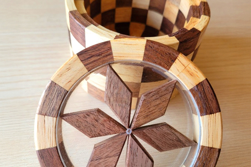 寄木は(ウォールナット+ラバーウッド)と(オーク+ラバーウッド)の2種類ございますが、お届けする種類はおまかせになります。