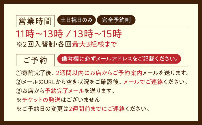 寄附確定後、2週間以内にお店からメールにてご予約のご案内をいたします。 【連絡先】 bricolage17etajima@gmail.com |