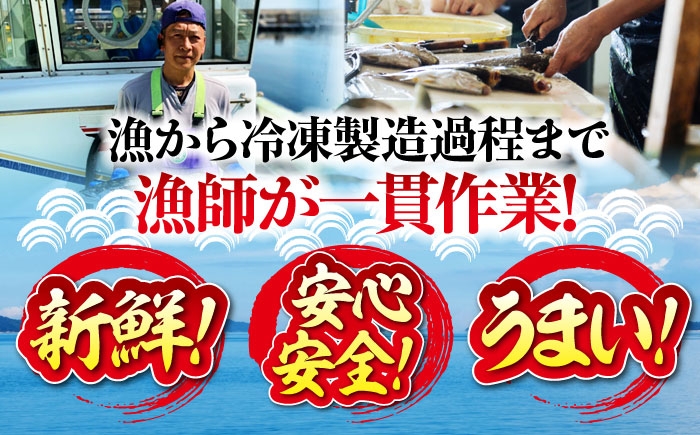 だからこそ神経を使い、漁師自ら水揚げし、丁寧に扱っています。良型の鰆を選び、漁から冷凍製造過程まで漁師が一貫して作業。
